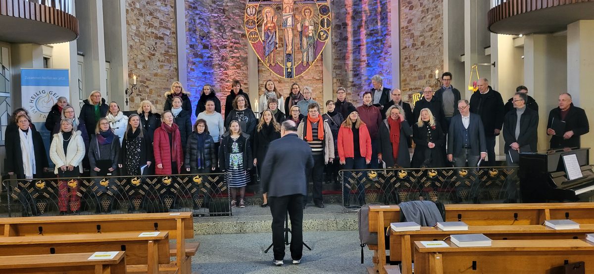 Begeisternder Spirit für die neue Pfarrei! „Toll“ und „Weiter so!“ ermunterte der Bischof unseren Gospelchor nach dem Gründungsgottesdienst der neuen Pfarrei „Heilig-Geist-am-Taunus“ am Sonntag, den 15.1.23, in der Pfarrkirche St. Katharina in Bad Soden.Über 40 unserer Sängerinnen und Sänger fanden sich nach den Ferien zu diesem feierlichen Event zusammen. Der Gospelchor Niederhöchstadt sang zwischen den Grußworten des Festakts und umrahmte kurzweilig die Reden der offiziellen Gratulanten.Nicht zuletzt die Frankfurter Neue Presse bekannte:“Begeisternd auch die Darbietung des Gospelchors … , der die Grußworte musikalisch rahmte.“We keep the spirit